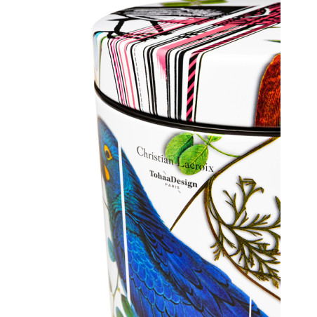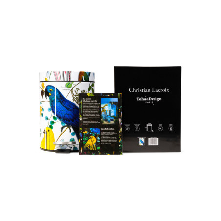 Dieser Kosmetikeimer ist aus einer exklusiven Zusammenarbeit zwischen dem renommierten Haus Christian Lacroix und TohaaDesign entstanden und bringt sanfte Energie und Licht in Ihr Zuhause. Auf weißem Grund trägt er das berühmte Motiv "Birds Sinfonia" aus dem Hause Christian Lacroix. Ein Hauch von Eleganz und Erhabenheit für eine einzigartige Deko!