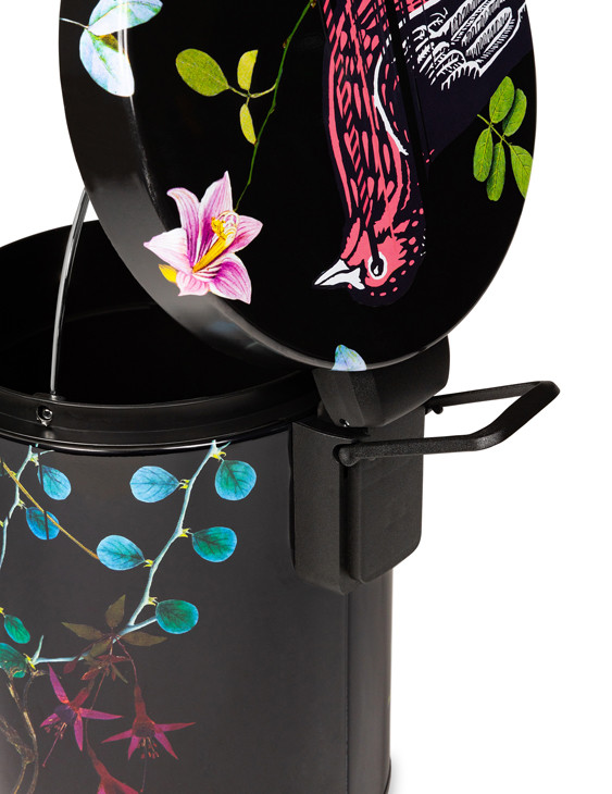 Das Haus Christian Lacroix bietet Ihnen gemeinsam mit TohaaDesign diesen einzigartigen Badezimmermülleimer für Ihr Badezimmer. "Birds Sinfonia" ist ein emblematisches Design aus dem renommierten Haus Lacroix mit einem tiefschwarzen Hintergrund, vor dem sich ein schillernder und farbenfroher Vogelschwarm erhebt.