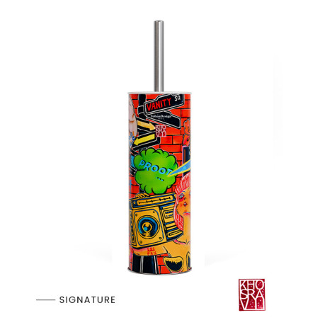 Esta escobilla de diseño original y colorista nos transporta al dinámico universo pop del genial Guive Khosravi. Su colección "Vanity Fair" para TohaaDesign es una explosión de colores llamativos y originales diseños.