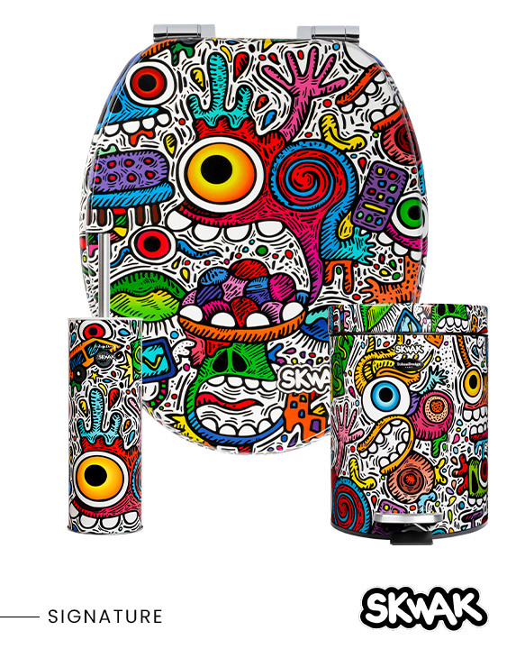 Pack abattant + brosse + +poubelle assortie "Crazy Maniac by Skwak"