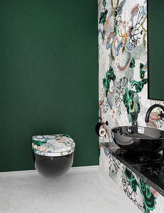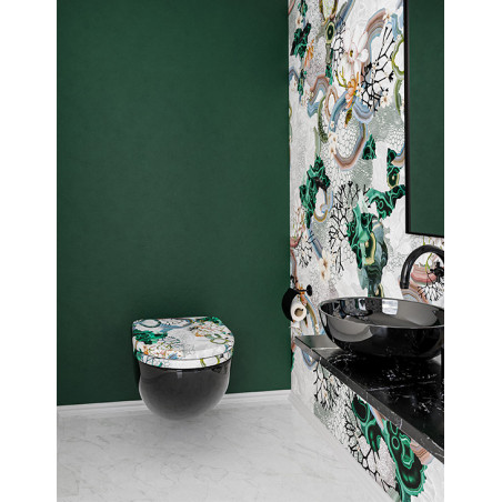 Nato dalla collaborazione tra la Maison Christian Lacroix e TohaaDesign, il sedile WC "Algae Bloom" combina armoniosamente minerali preziosi e flora marina. Traccia così un nuovo mondo in cui la malachite riflette la moiré e le alghe imitano l'intreccio dei pizzi più fini, aggiungendo un tocco di eleganza e raffinatezza al tuo bagno.
